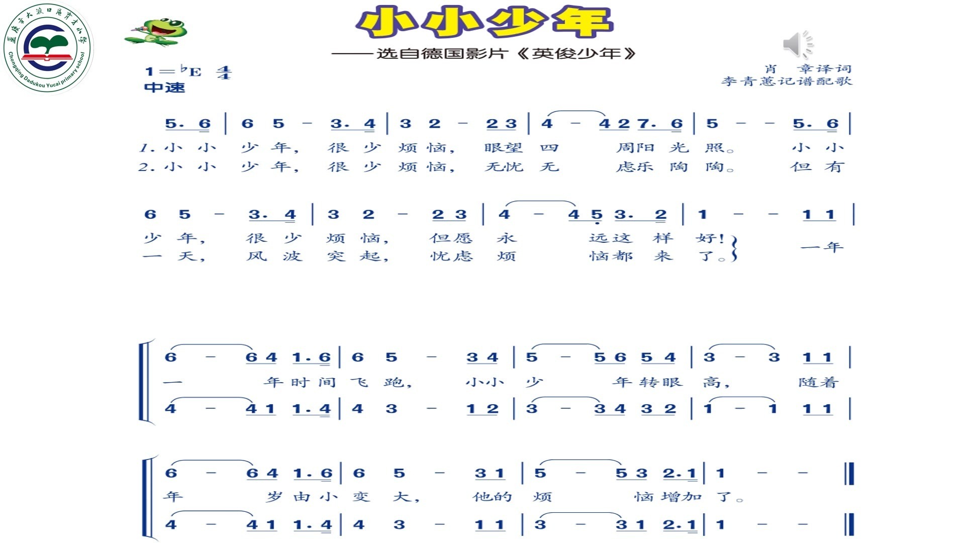 【四年级下册 音乐】《小小少年》(重庆市大渡口区育才小学 胡小红)
